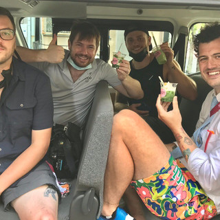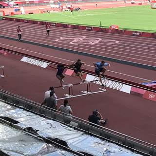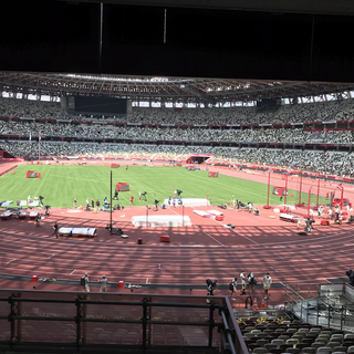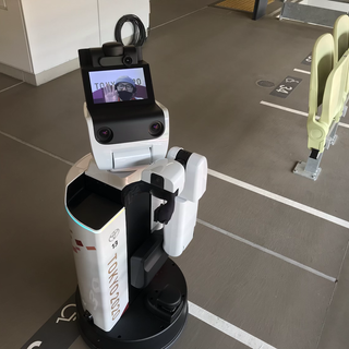 The crew were interview and filming on the Olympic track. They love robots in Japan this one is operated by the person whose face you can see they talk and move around the arena like a security guard. Hot work today so found a milk shake shop to cool down.